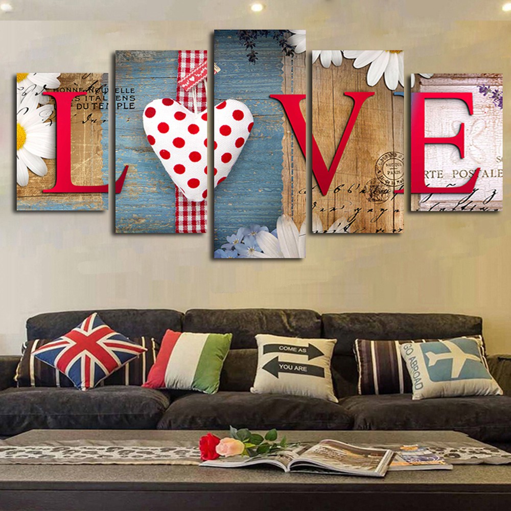 Canvas Painting Abstract 5pcs Modern Art Oil Painting Picture Decor Love | Shopee Philippines